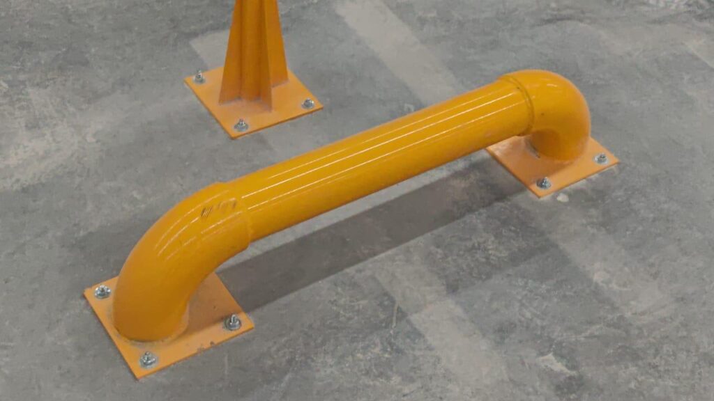 Protetores metálicos em aço para absorção de impactos em pilares, vigas e cantos de parede. Alta resistência e fácil fixação, com pintura de alta visibilidade.