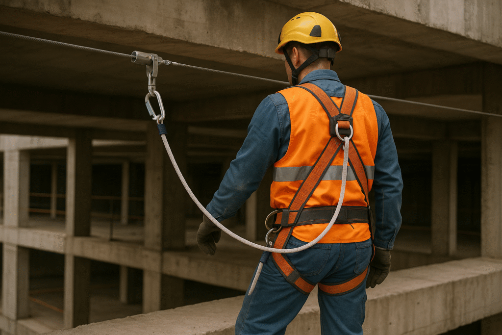 Sistemas de proteção contra queda em altura. Linha de vida com cabo de aço ou trilho, com instalação técnica e certificação NR-35.