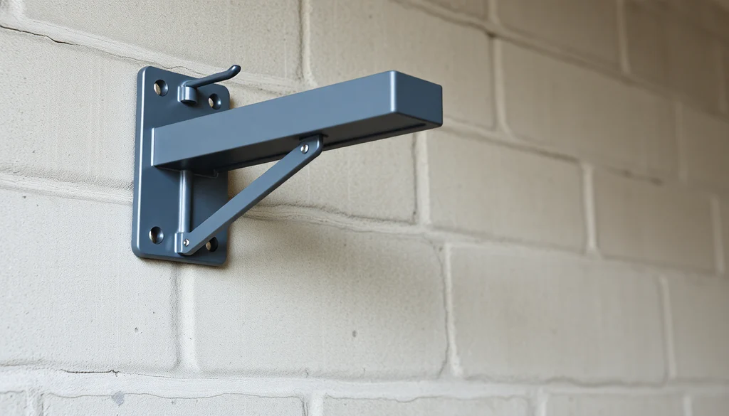 Sistema de segurança para travar porta de doca durante carga e descarga. Estrutura robusta com fixação na parede, reduz riscos de acidentes e garante estabilidade operacional.